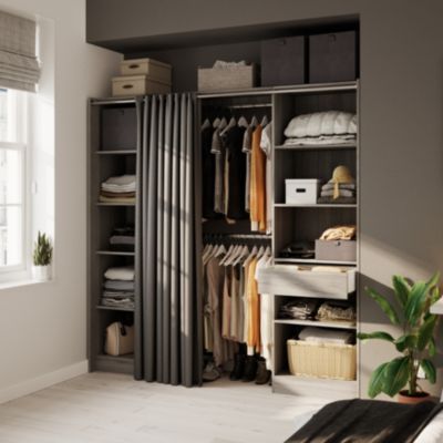203 cm largeur maximum : 180 x 50 x 203 cm. 203 cm largeur maximum : Barre de penderie, tiroirs et tablettes permettent d'optimiser au mieux l'espace, et les boîtes, moins facilement accessibles, offrent des rangements dressing modulable darwin de castorama.